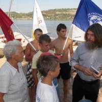 А ведь выпускников этой школы Конюхов встречал на больших регатах, и просто в океане, и от них и узнал об этом замечательном яхт-клубе «ЮНГА». В один из солнечных дней юные яхтсмены прибыли в христианский лагерь, и к всеобщему удовольствию, катали всех желающих под руководством самого Федора Конюхова.