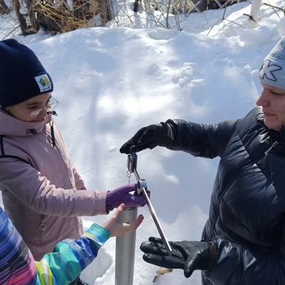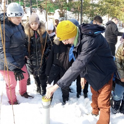 На заставе гости познакомились с деятельностью экологической станции, о которой им рассказали соавторы и эксперты проекта, члены Русского географического общества Наталья Владимировна Кривенцова и Андрей Анатольевич Рагуля. Для гимназистов было организовано занятие в исследовательской лаборатории, где преподаватели кафедры метеорологии географического факультета СГУ имени Н.Г. Чернышевского Елена Владимировна Демидова и Наталия Владимировна Семенова вместе со студентами-волонтерами рассказали про наблюдения за снежным покровом и экологическим состоянием Саратова. Ребята узнали, какие бывают снежные осадки и виды снежинок, научились с помощью специальных приборов и оборудования проводить экологические замеры кислотности и минерализации талого снега, в ходе практической части измерили высоту и массу снежного покрова.