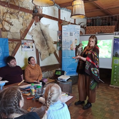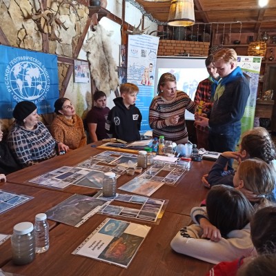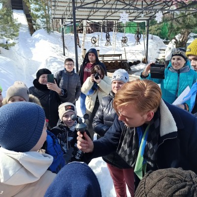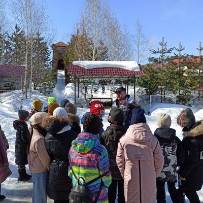В завершении визита на экологическую станцию прошло чаепитие в охотничьем домике заставы, а любители зимних забав покатались с ледяной горки-мельницы.