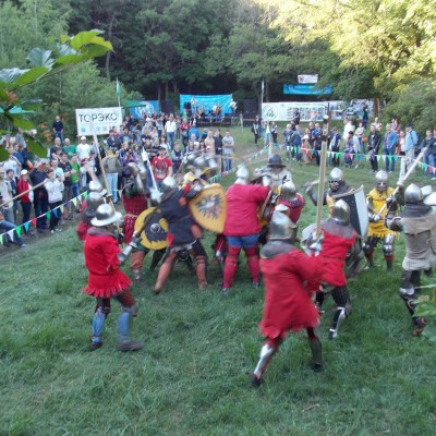 В завершении фестиваля состоялись настоящие бои с участием рыцарских клубов « Датская пехота», «Верхние даны», «Стальное копье», «Хольстентер».