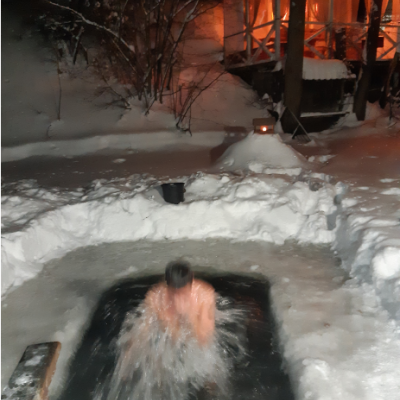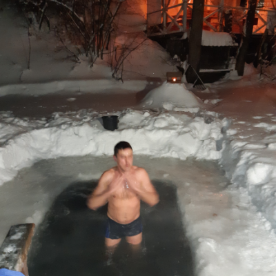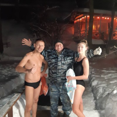 Крещенский мороз -25гр. не испугал желающих окунуться в купель на Андреевской Заставе, тем более что всех ждал горячий чай в Охотничьем зале с камином и жаркая баня адусов.