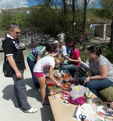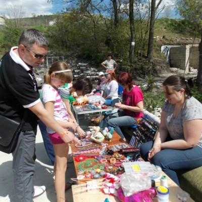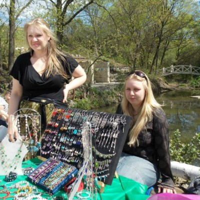 На праздник в день Светлой Пасхи, 5 мая гости начали собираться к полудню.По периметру площадки на Андреевской Заставе, у Мельницы расположились мастера-прикладники со своими уникальными авторскими изделиями.Участники праздника могли купить ювелирные украшения, красивые кожаные браслеты, и даже красивых кукол.