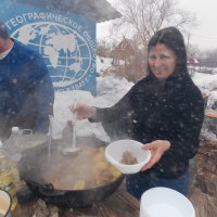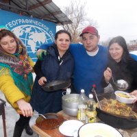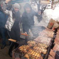 Гости собрались от мала до велика. По традиции блины жарили прямо на открытом огне и подавали со сметаной, медом и вареньем. А знаменитый в известных кругах повар Заур, потчевал гостей фирменным ароматным «шулюмом».