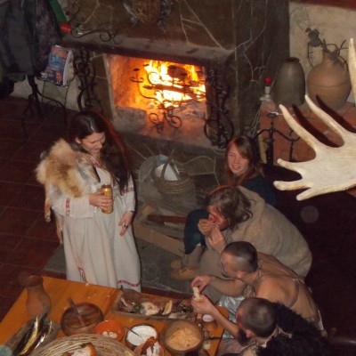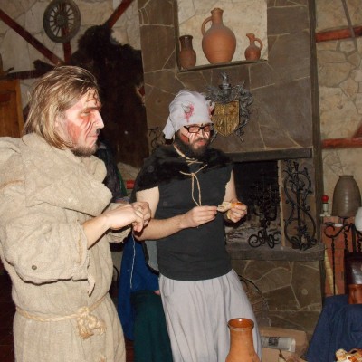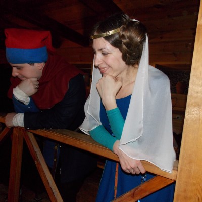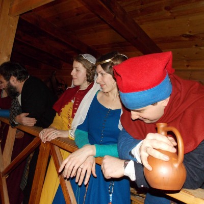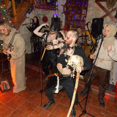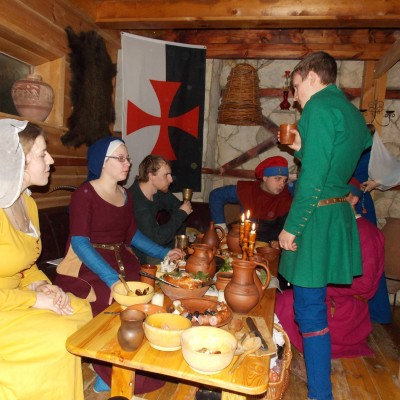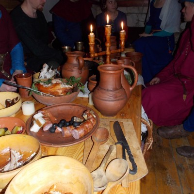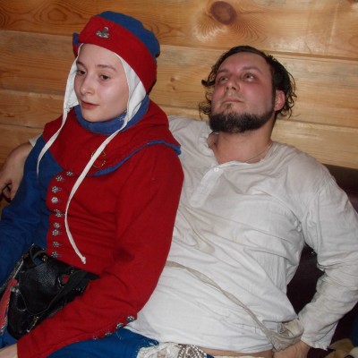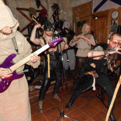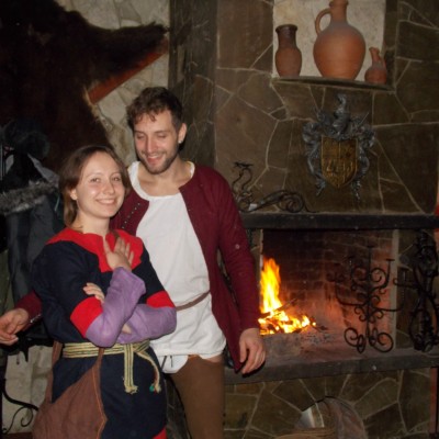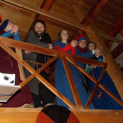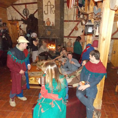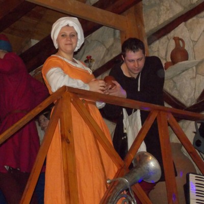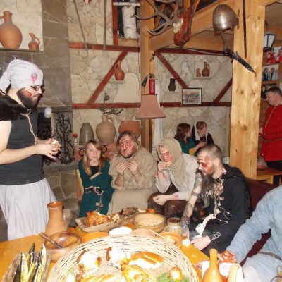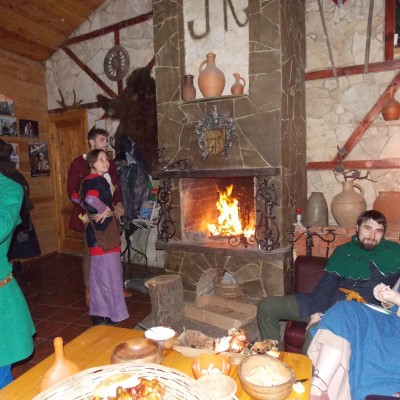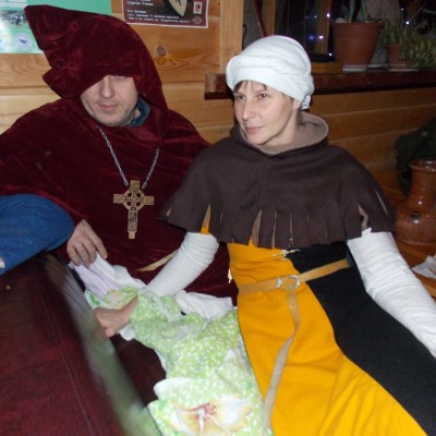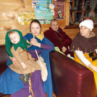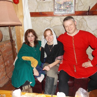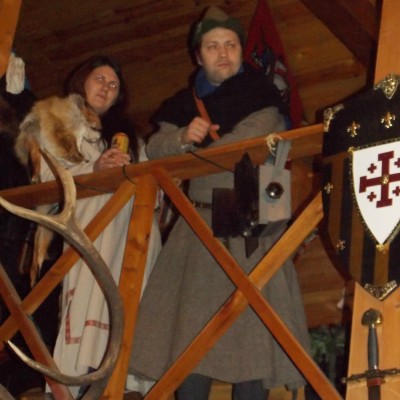 Начало нового 2016года (5-го января) традиционно было отмечено сразу несколькими рыцарскими клубами на Андреевской Заставе . Как всегда средневековые костюмы, оружие и глиняная посуда сочетались на этот раз с настоящей средневековой музыкой. Гостями вечеринки в «таверне» стали музыканты из группы «Жабъ». Настоящая волынка, флейты и барабаны задали жару и заставили всех собравшихся пуститься в пляс.
