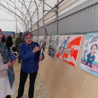Гости могли познакомиться с экспозицией исторических скульптур «Аллея воинской славы», которую представил руководитель проекта Михаил Сердюков и с выставкой фронтовых карикатур Александра Дьякова «Командировка в 45-й…». Одну из работ саратовец подарит Владимиру Путину.