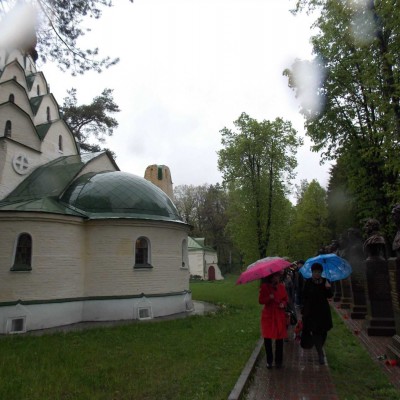 Поляна Слетов Федора Конюхова расположена недалеко от Серафимо-Знаменского скита, созданного грузинской княжной и игуменьей Фамарью, более ста лет назад. Многие из гостей фестиваля приняли участие в молебне в честь памяти погибших воинов и праздничной трапезе, которую любезно организовали монахини скита.