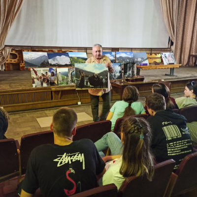 Представители Саратовского областного отделения РГО провели занятие по экологической безопасности со школьниками 1 июля по приглашению координатора Саратовского регионального отделения РДШ Елены Владимировны Рузановой представители Русского географического общества эколог, пресс-секретарь областного отделения РГО Андрей Анатольевич Рагуля, географ, президент фонда «Родительская лига» Наталья Владимировна Кривенцова и педагог-психолог школы безопасности Виктория Сергеевна Щеглова побывали с визитом в Балашовском районе и провели занятие с активистами Российского движения школьников. Разговор с ребятами был на тему обеспечения безопасности жизни, в том числе экологической. В ходе встречи Наталья Владимировна Кривенцова и Виктория Сергеевна Щеглова рассмотрели со школьниками важность соблюдения правил и следованию нормам закона, заботы о здоровом образе своей жизни и об окружающей среде. Андрей Анатольевич Рагуля представил свои фотоработы из серии «Россия: Волга - Кавказ» и рассказал о географических, экологических и этнокультурных особенностях территорий Поволжья и Кавказа. Школьники на предложение лекторов подумать о возможных формах их участия в решении вопросов экологической культуры и экологической грамотности привели разные варианты, в том числе те, в которых уже принимают участие: экологические субботники, экологические квесты, экологические слеты, экологические олимпиады и т.д. После занятия ребята провели для гостей экскурсию по знаменитой усадьбе Нарышкиных в селе Пады и рассказали много интересного об этом роскошном дворцовом ансамбле, который сейчас находится на реставрации, и о парке, окружающем его с великолепными экземплярами чёрной сосны, тополя дельтовидного, елей различных элитных пород и богатырскими дубами.