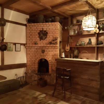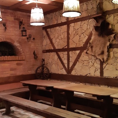Для гостей широкое застолье, площадка для танцев и настоящая печка с дровами.