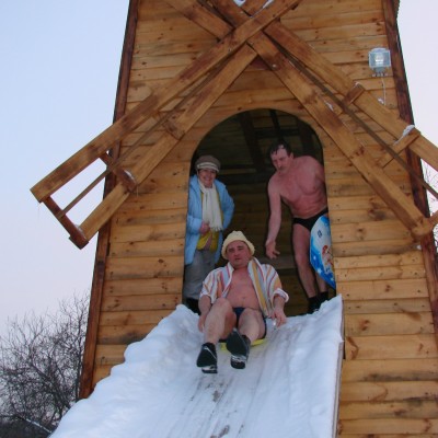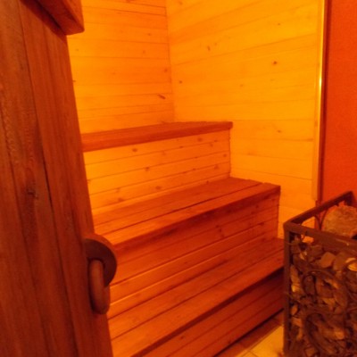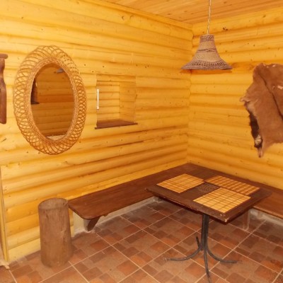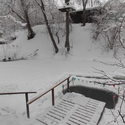 Зимой можно окунуться в прорубь , летом- облиться прохладной водой. В комнате отдыха попить чаю.