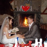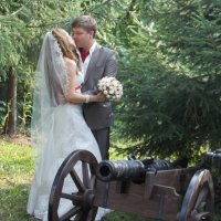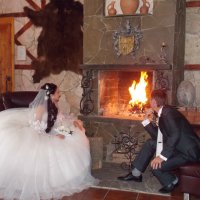 И пока гости наслаждаются пикником, молодожены удаляются в Рыцарский Зал, где спокойно, без лишних глаз, фотографируются в экзотическом интерьерах : у пушки, у камина с живым огнем, на свадебных качелях среди елей.