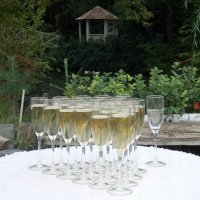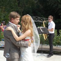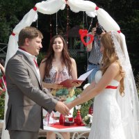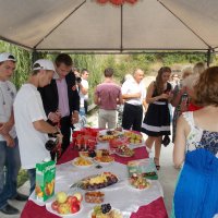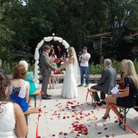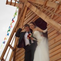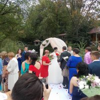 На просторной площадке у Мельницы , на берегу пруда, размещается свадебная арка из цветов, устанавливаются лавки , стулья для гостей, в одной из беседок – фуршетный стол.